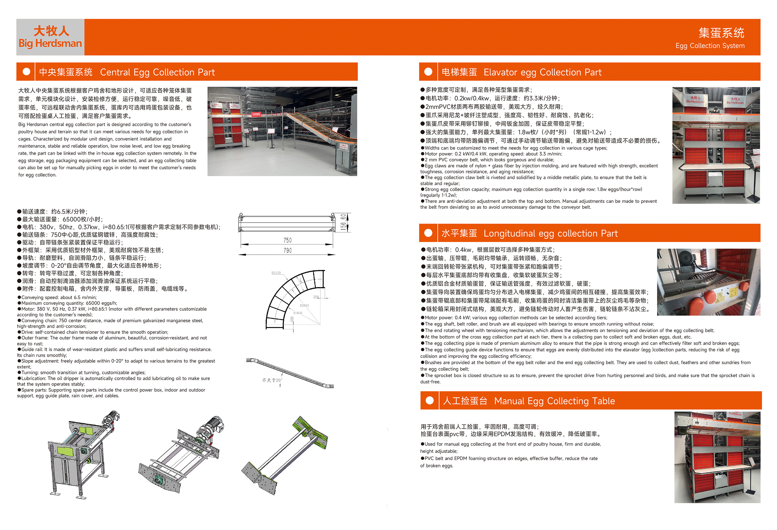 大牧人集蛋系統(tǒng)由雞蛋緩沖裝置,集蛋帶,鏈輪箱、水平集蛋、電梯集蛋、人工撿蛋臺,撥蛋器,中央集蛋等模塊組成,其中水平集蛋、電梯集蛋可根據(jù)不同層數(shù)層高籠型等提供定制化設計,中央集蛋可根據(jù)客戶雞舍布局廠區(qū)地形等提供最科學的布局方案。