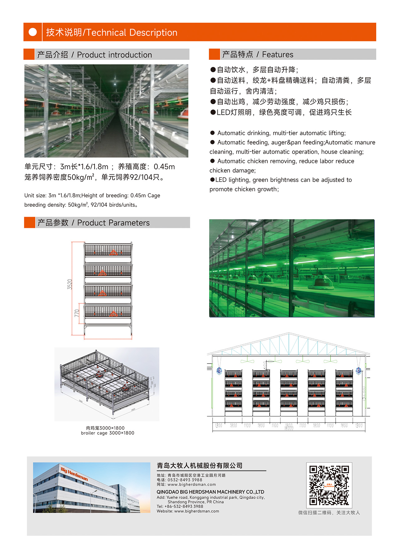 ●LED燈照明,綠色亮度可調(diào),促進雞只生長