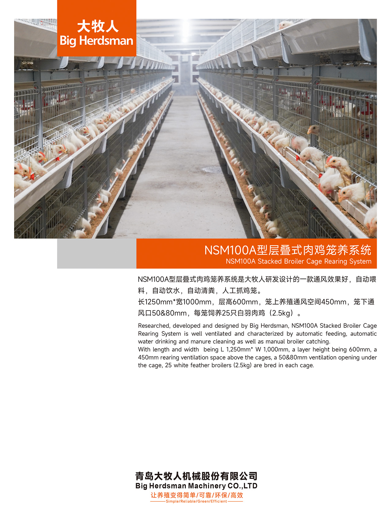 NSM100A型層疊式肉雞籠養(yǎng)系統(tǒng)是大牧人研發(fā)設(shè)計(jì)的一款通風(fēng)效果好,自動(dòng)喂料,自動(dòng)飲水,自動(dòng)清糞,人工抓雞籠。