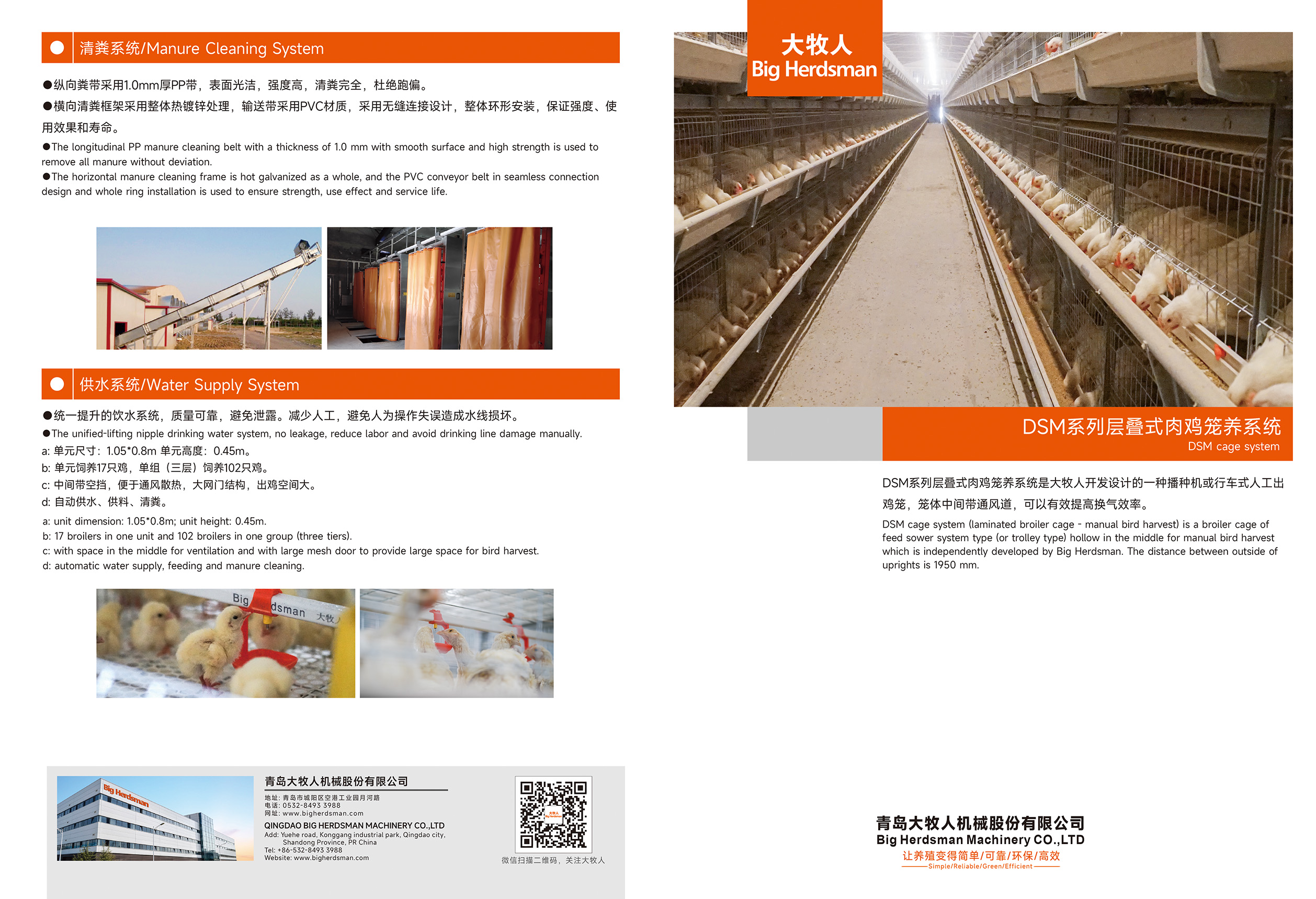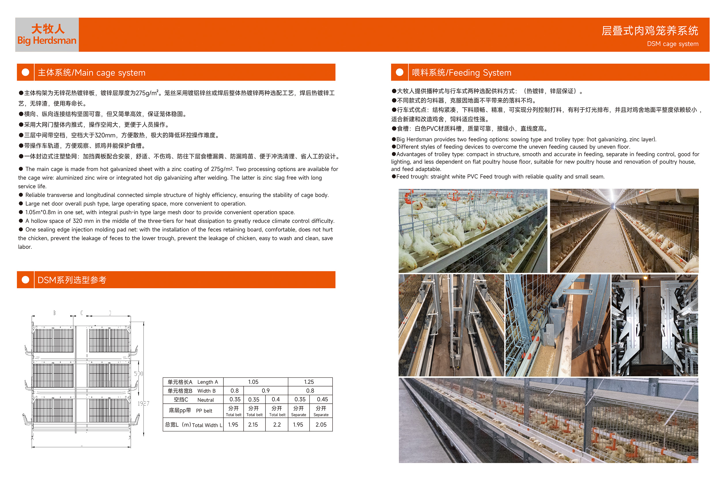 DSM系列層疊式肉雞籠養(yǎng)系統(tǒng)是大牧人開發(fā)設(shè)計的一種播種機(jī)或行車式人工出雞籠,籠體中間帶通風(fēng)道,可以有效提高換氣效率。