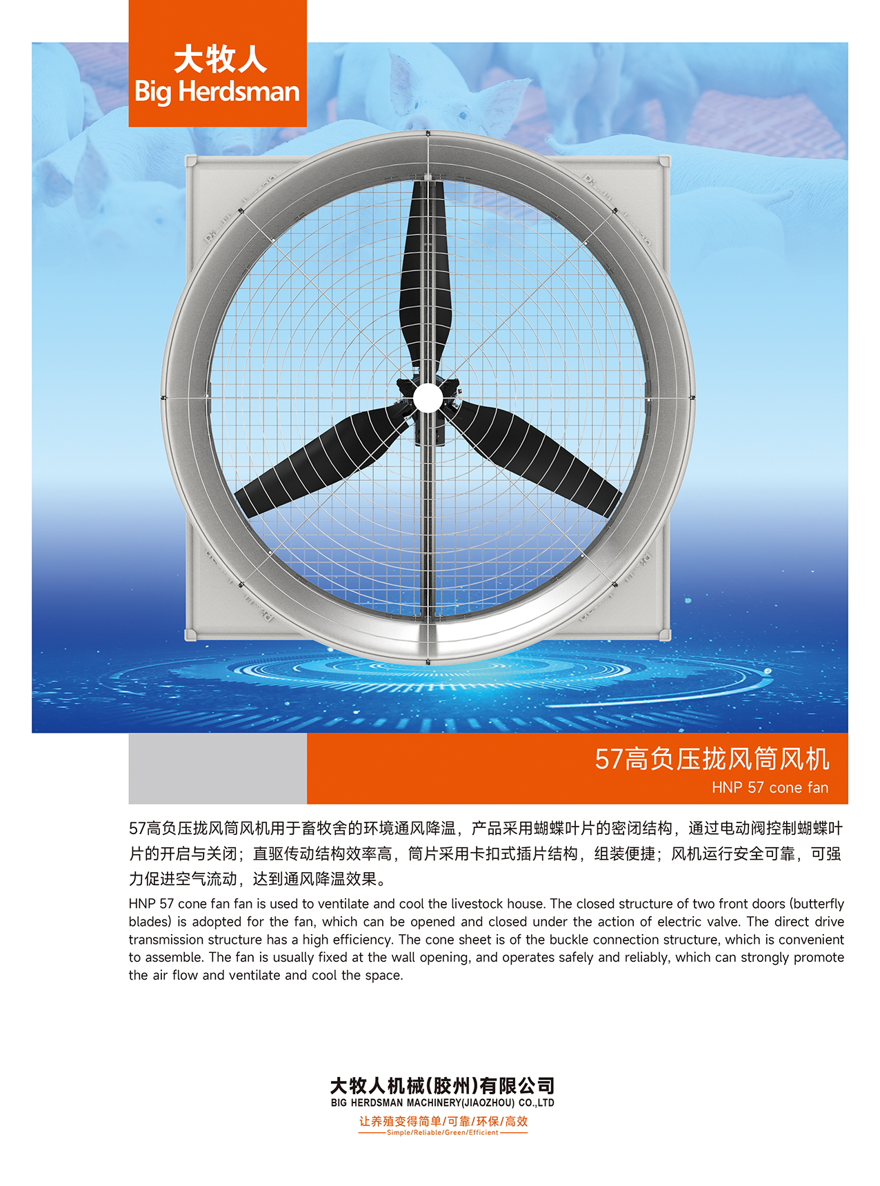 57高負壓攏風筒風機用于畜牧舍的環(huán)境通風降溫,產(chǎn)品采用蝴蝶葉片的密閉結構,通過電動閥控制蝴蝶葉片的開啟與關閉;直驅傳動結構效率高,筒片采用卡扣式插片結構,組裝便捷;風機運行安全可靠,可強力促進空氣流動,達到通風降溫效果。