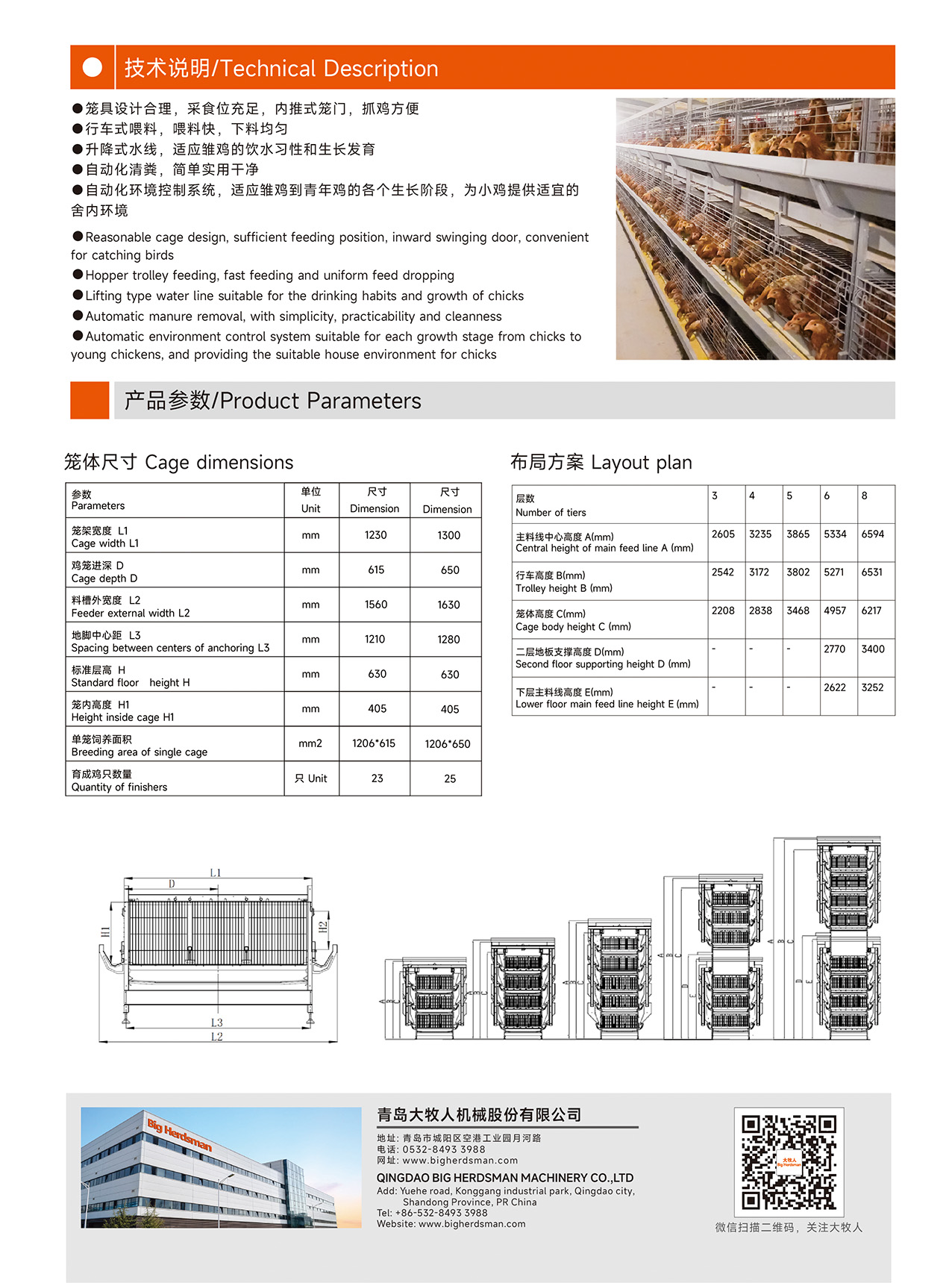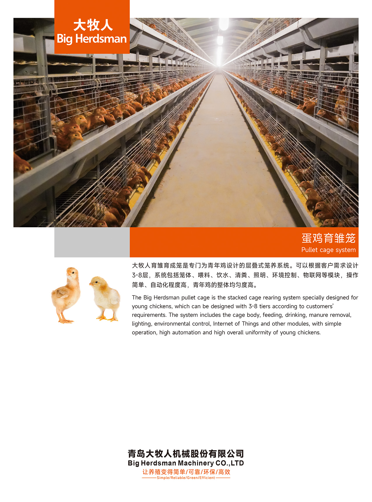 大牧人育雛育成籠是專門為青年雞設(shè)計(jì)的層疊式籠養(yǎng)系統(tǒng)??梢愿鶕?jù)客戶需求設(shè)計(jì)3-8層,系統(tǒng)包括籠體、喂料、飲水、清糞、照明、環(huán)境控制、物聯(lián)網(wǎng)等模塊,操作簡(jiǎn)單、自動(dòng)化程度高,青年雞的整體均勻度高。