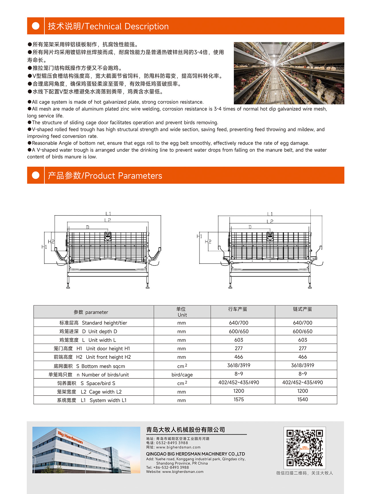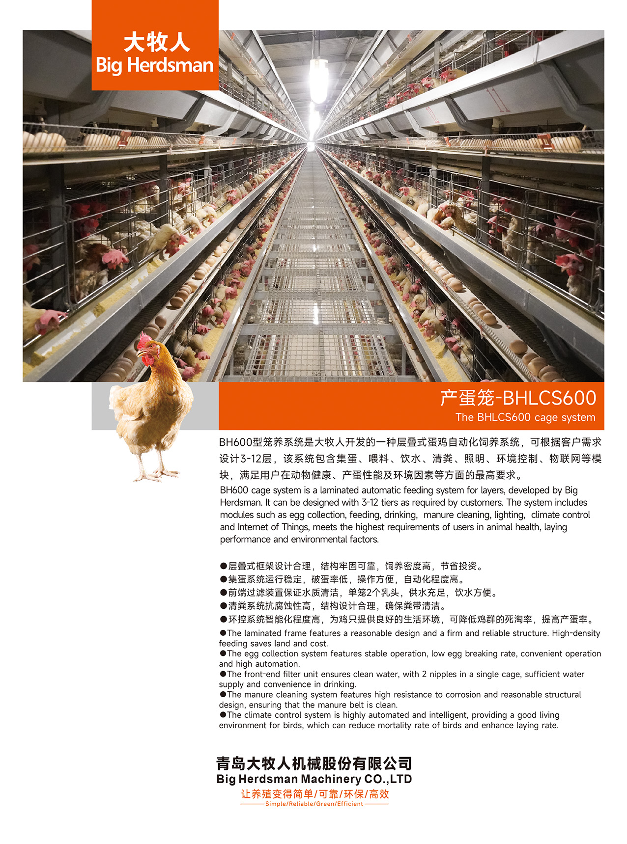 BH600型籠養(yǎng)系統(tǒng)是大牧人開發(fā)的一種層疊式蛋雞自動化飼養(yǎng)系統(tǒng),可根據(jù)客戶需求設(shè)計3-12層,該系統(tǒng)包含集蛋、喂料、飲水、清糞、照明、環(huán)境控制、物聯(lián)網(wǎng)等模塊,滿足用戶在動物健康、產(chǎn)蛋性能及環(huán)境因素等方面的最高要求。